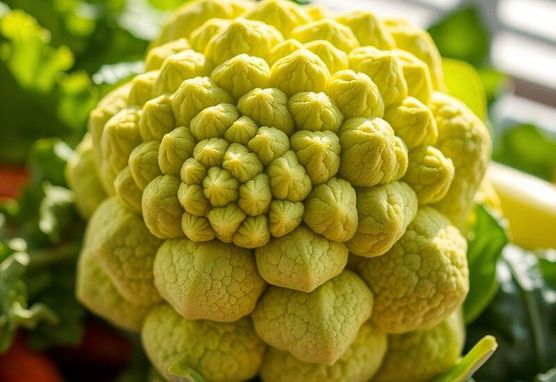 Kalafior romanesco to fascynujące warzywo, które zyskuje coraz większą popularność w kuchniach na całym globie. Należy do rodziny kapustowatych i jest bliskim krewnym kalafiora oraz brokułów. Jego żółtozielona barwa oraz spiralna struktura przyciągają wzrok, sprawiając, że wygląda zarówno apetycznie, jak i wyjątkowo.